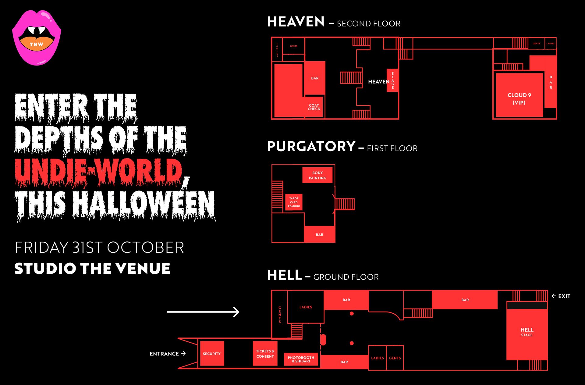 For outfit inspiration, check out past events: www.thenaked.world/past-events — Or go wild with our Halloween Pinterest board: www.pinterest.com/halloween